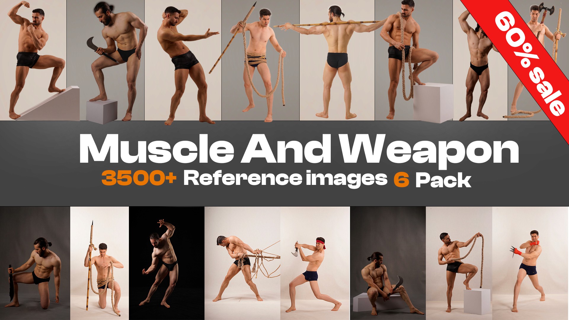 Muscle And Weapon Bundle — 3500+ Male Anatomy & Action Reference Images for Artists