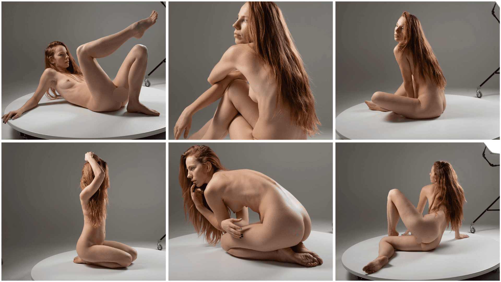 The model’s long flowing hair and expressive poses create beautiful silhouettes that are perfect for figure drawing, character design, and anatomy practice.