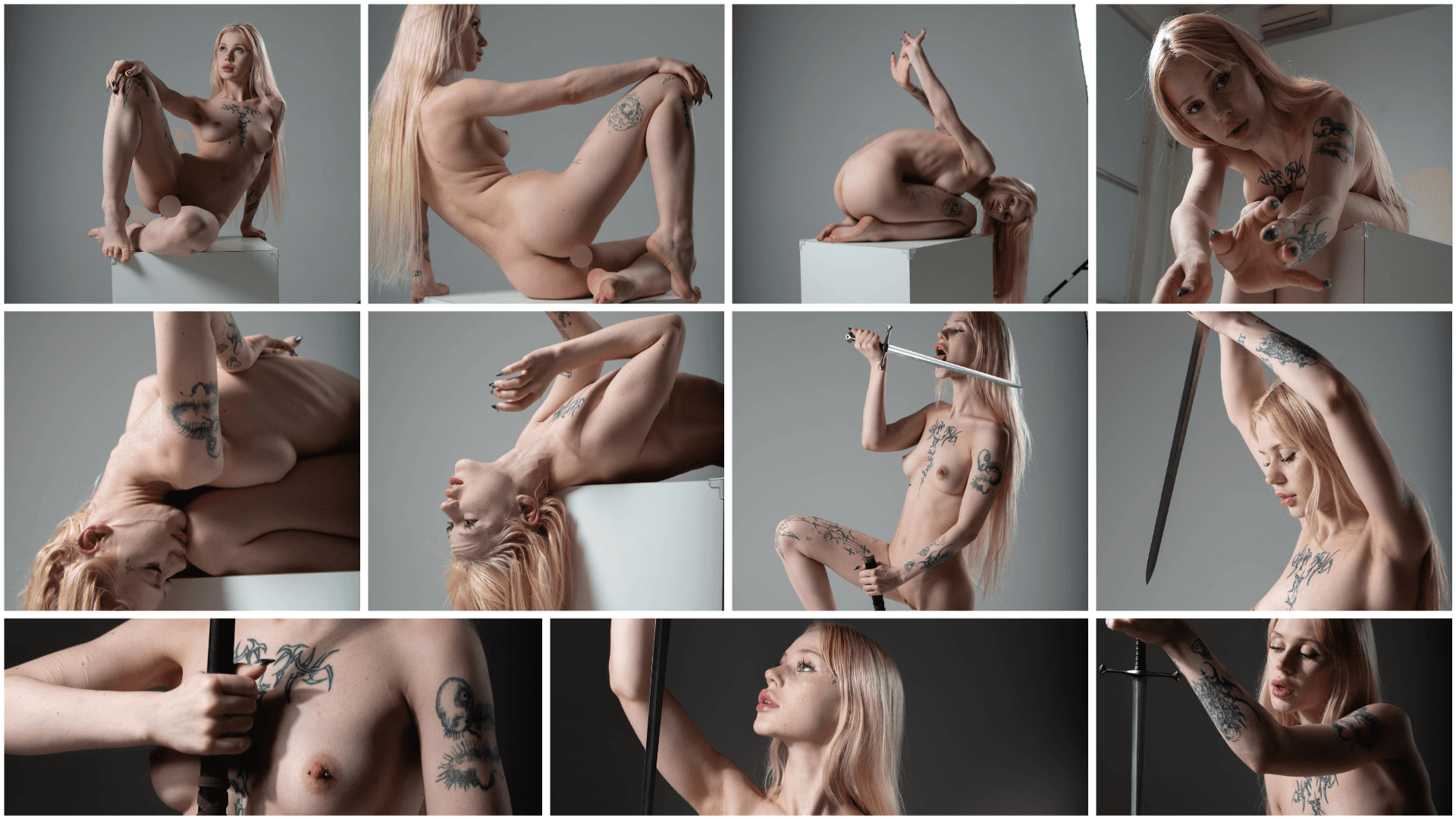 Steel & Grace is a striking collection of 1100+ warrior-inspired figure pose references featuring a beautiful tattooed model performing expressive, elegant poses with a sword.