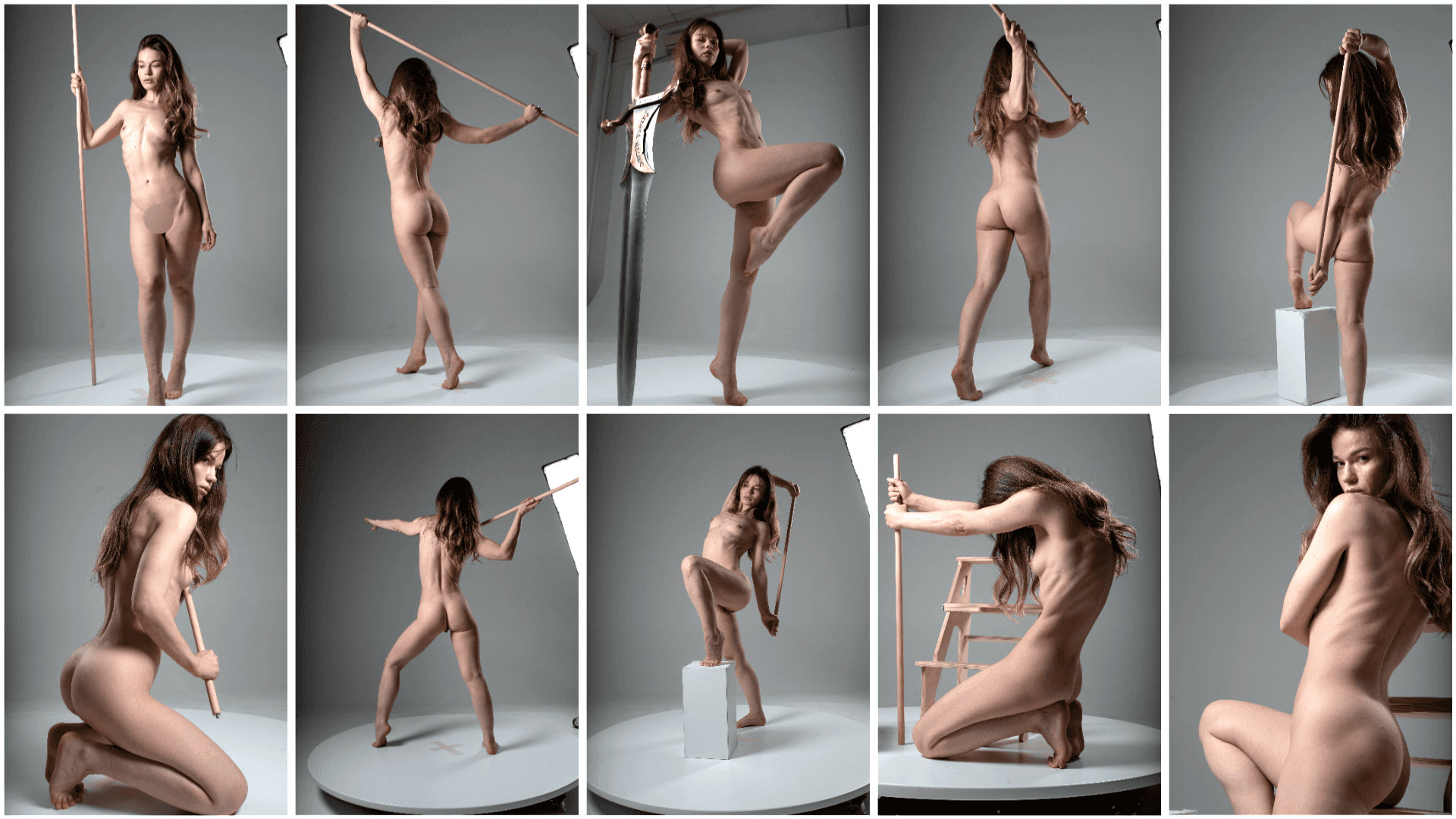Clean studio lighting and multiple angles allow artists to clearly observe muscle structure, balance, and motion mechanics while drawing dynamic characters.